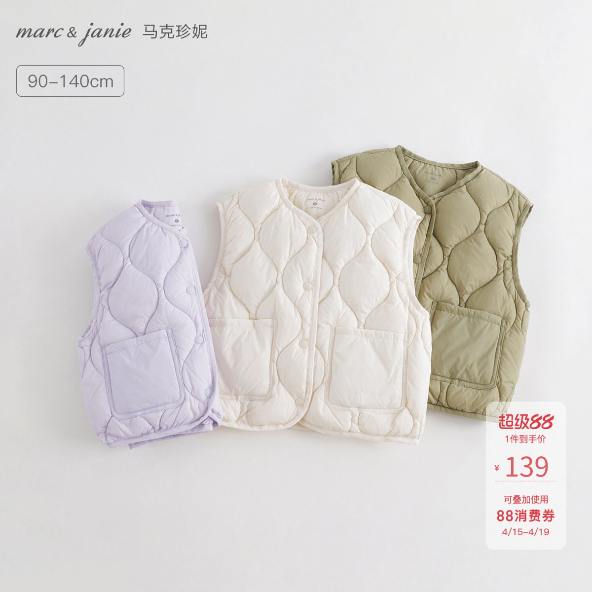 [校服神器]马克珍妮男女童三防超轻保暖羽绒服马甲宝宝冬装231189