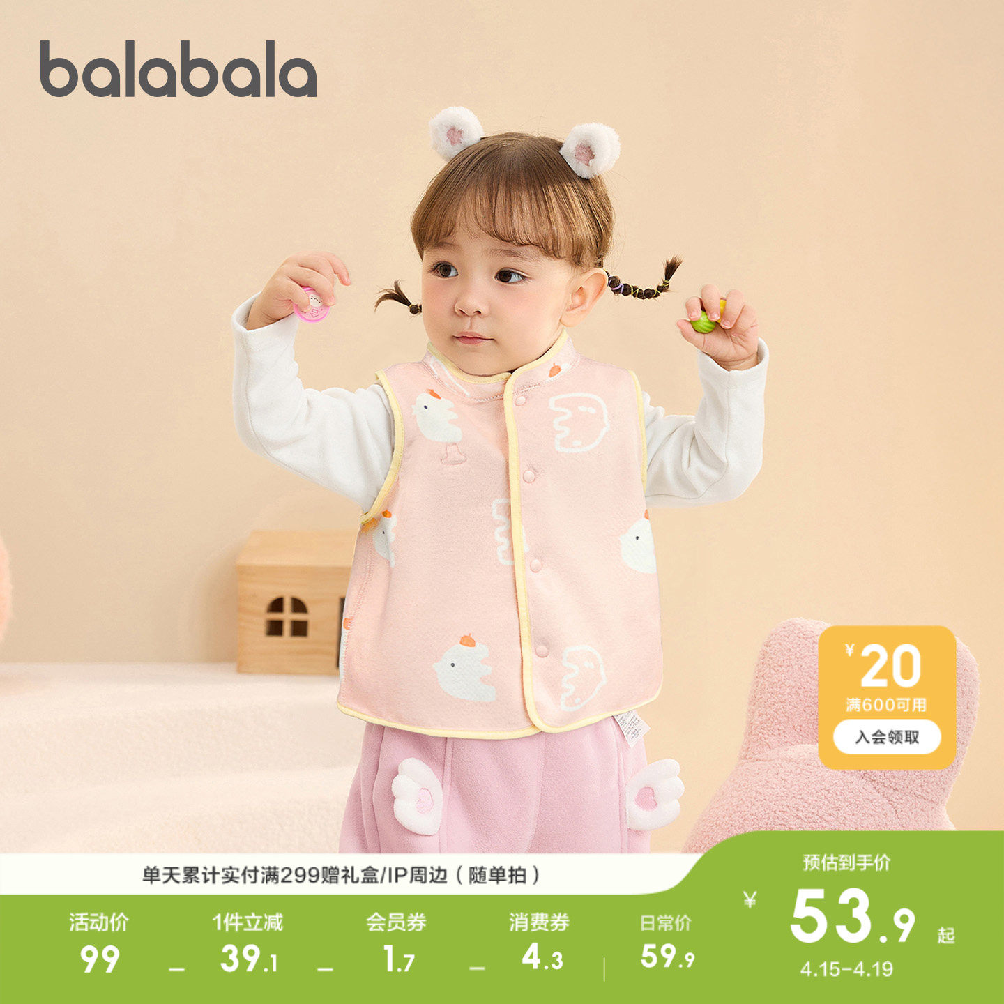 巴拉巴拉童装宝宝马甲儿童冬装衣服男童女童背心羽绒服轻薄萌时尚