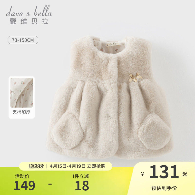 【商场同款】戴维贝拉儿童背心保暖冬装新款女童宝宝马甲毛绒坎肩