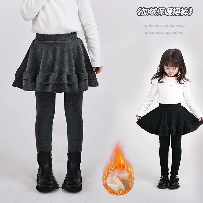 女童加绒裙裤秋冬装新款儿童加厚一体绒打底裤外穿宝宝假两件裤子