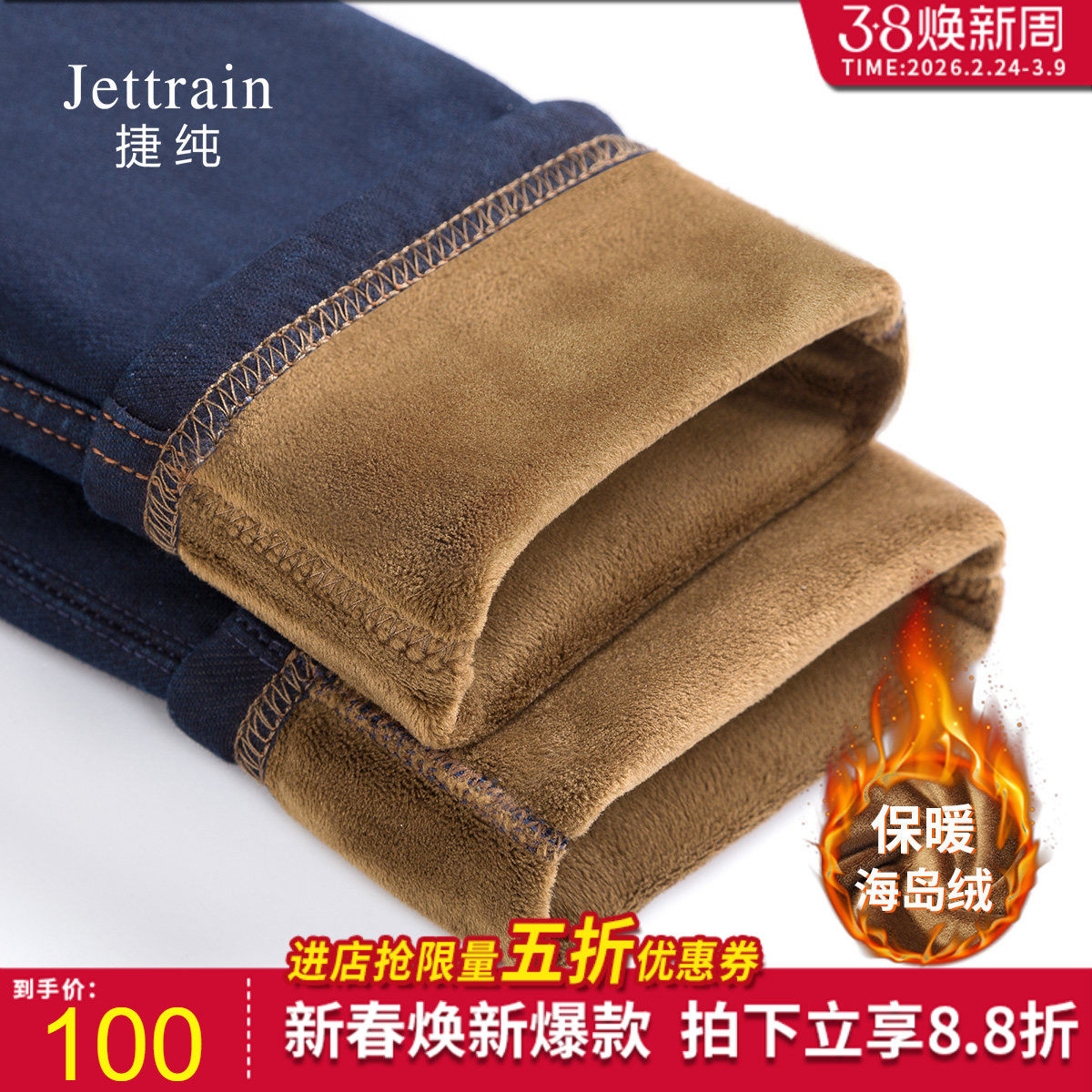 - 弹性加绒牛仔裤女