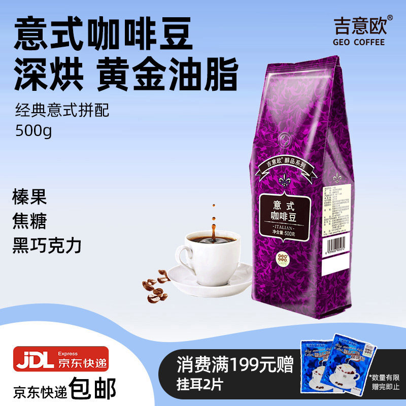 吉意欧精品意式咖啡豆深度烘焙油脂王阿拉比卡咖啡粉现磨500g