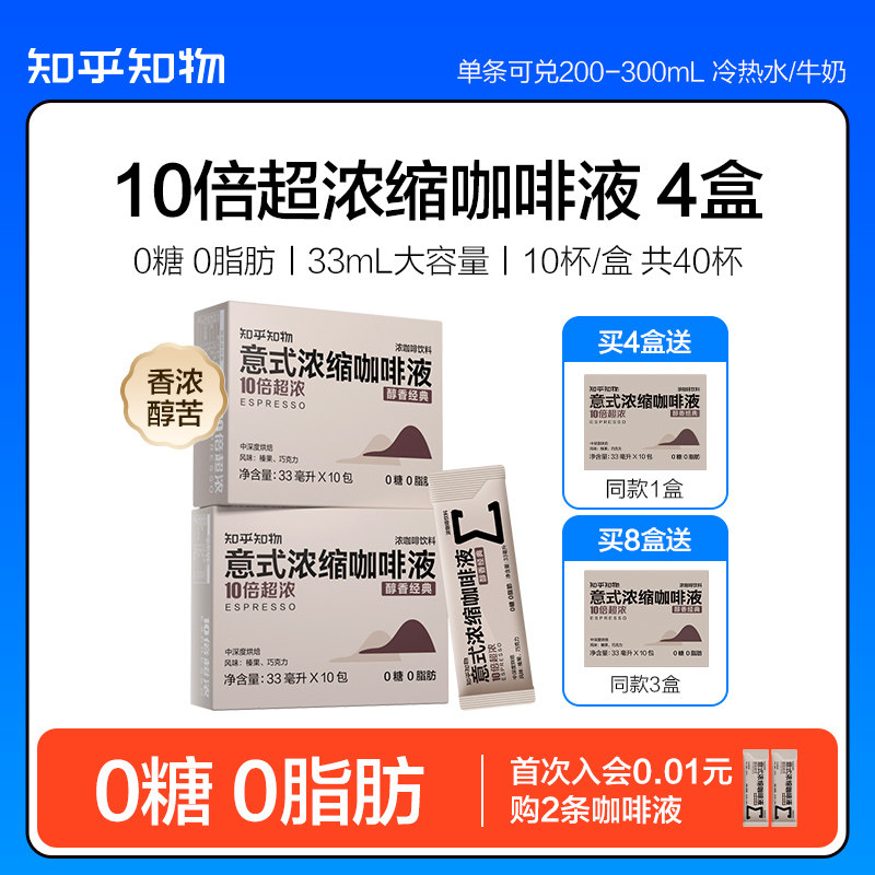 知乎知物10倍超浓缩咖啡液0糖0脂速溶醇苦美式意式咖啡萃取液40杯