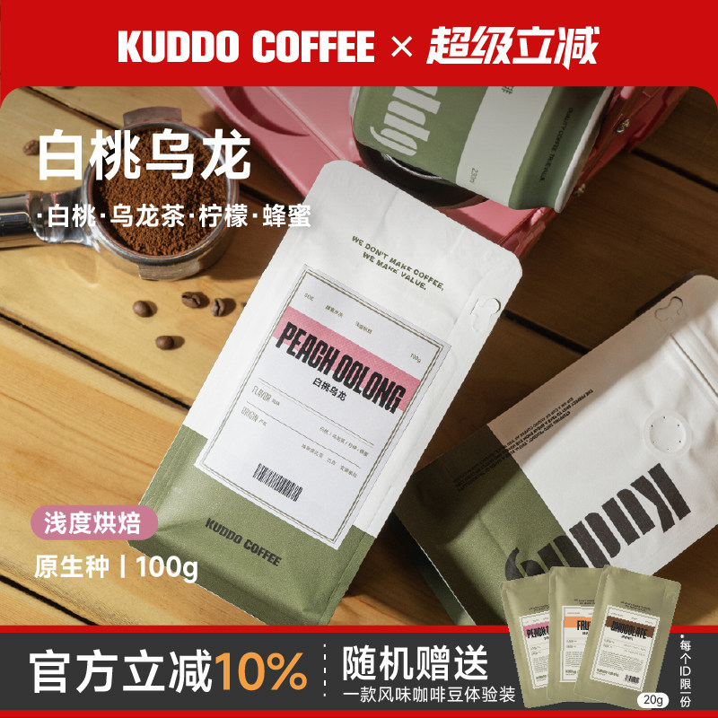 KUDDO埃塞俄比亚SOE意式咖啡豆白桃乌龙新鲜现磨手冲浅烘美式100g