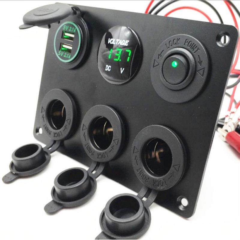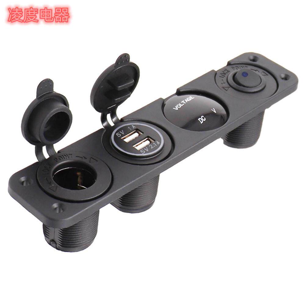 汽车热销6位船型开关面板组合双USB充电器电压表点烟器彩屏电压表