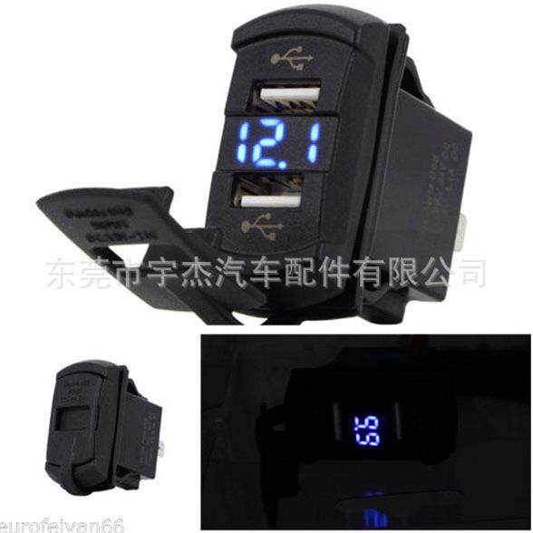 新款车载数显电压表开关充电器12-24V船型双USB充电器5V4.2A蓝灯