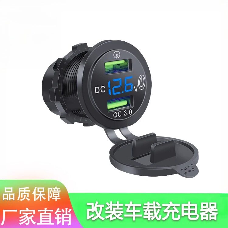 铝合金汽车车充房车游艇改装车载双usb充电器数显快充PDQC3.0防水