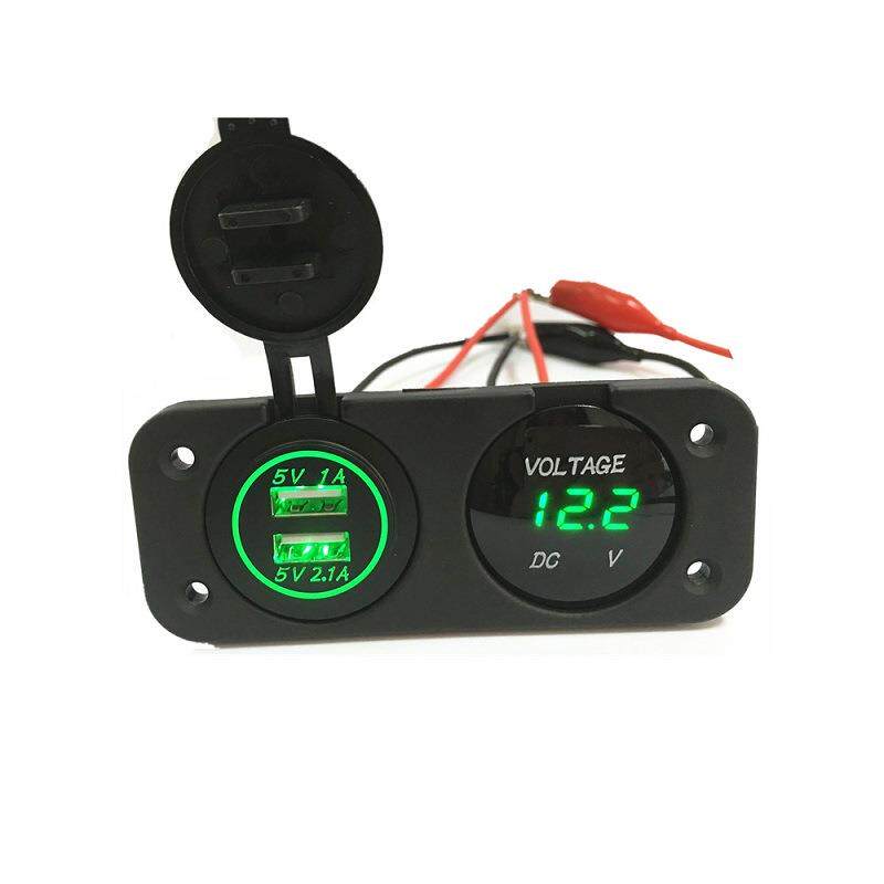 汽车船艇改装双孔板充电器组合DC12-24V3.1A双USB充电器+电压表