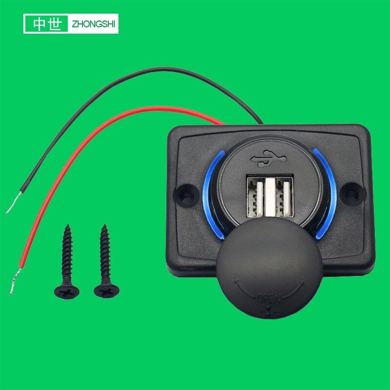 汽车改装车用双孔组合板12-24V双USB充电器带红光LED光防水盖