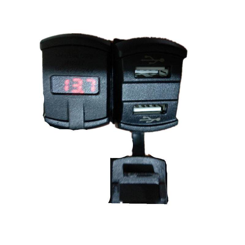 日系车载专用原孔位电压表双USB充电器含线束LED橙光充电接口