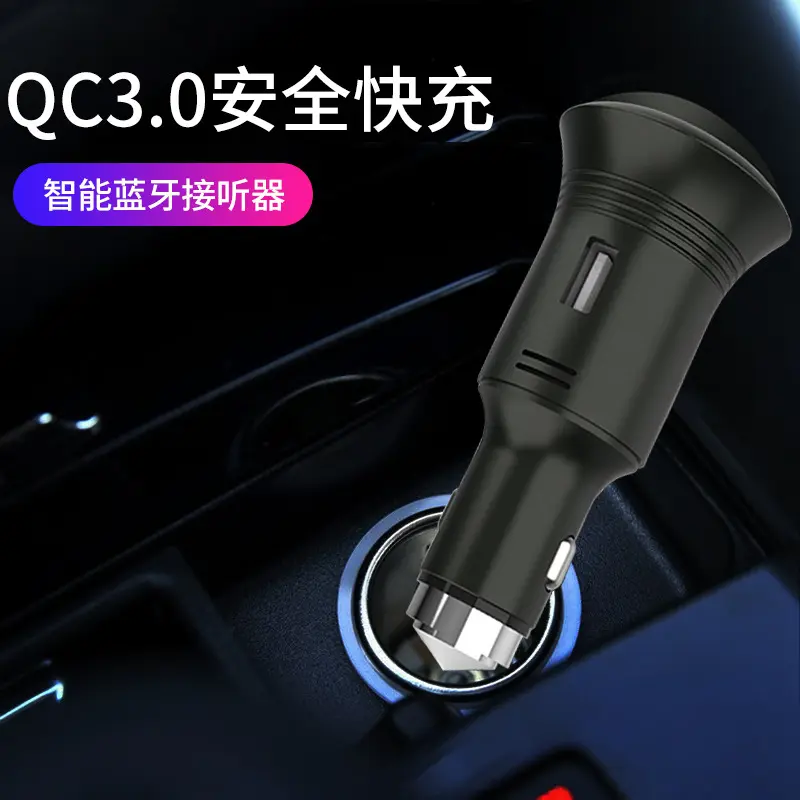 车载双usb充电器 耳机车充一氧化碳检测车充破窗安全錘r-1956