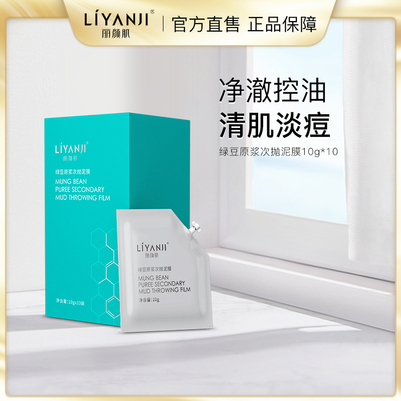 丽颜肌绿豆原浆次抛泥膜清洁面膜泥浆膜痘痘肌肤周期清肌10g*10袋