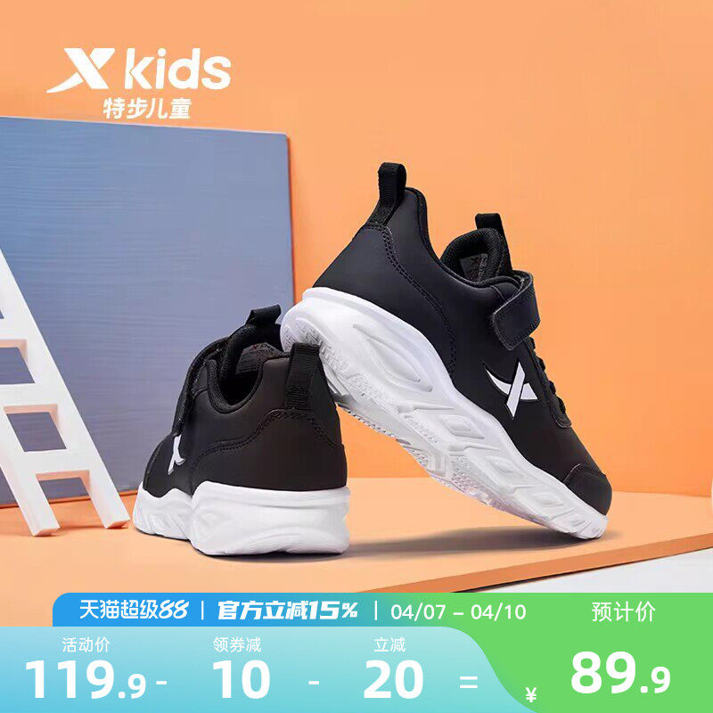 特步童鞋春季新款儿童男童板鞋运动鞋黑白鞋子女童鞋休闲鞋小白鞋