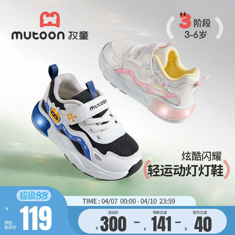 牧童儿童闪灯鞋2026春季新款机器人男童鞋轻便减震女童学生运动鞋