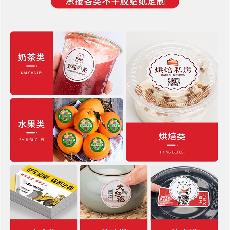 不干胶贴纸定制广告标签订制二维码商标定做透明pvc防水logo贴纸打印奶茶外卖封口贴不粘胶卷筒合格证印刷