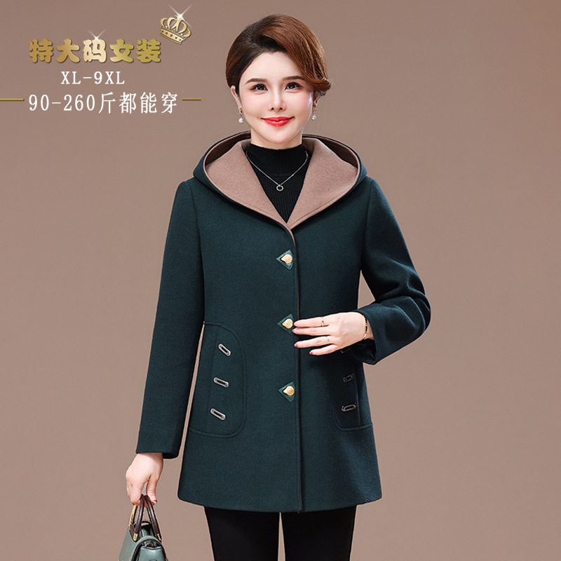 中老年女春装外套789XL胖mm妈妈加肥特大码连帽纽扣宽松遮肉上衣