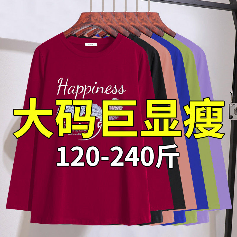300斤超肥特大码打底衫女200胖mm春装内搭长袖T恤240胖子女装上衣
