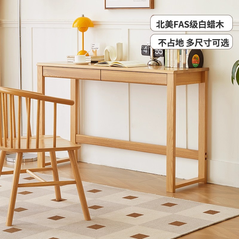 治木工坊全实木书桌家用简约白蜡木窄电脑桌北欧写字桌小户型边桌