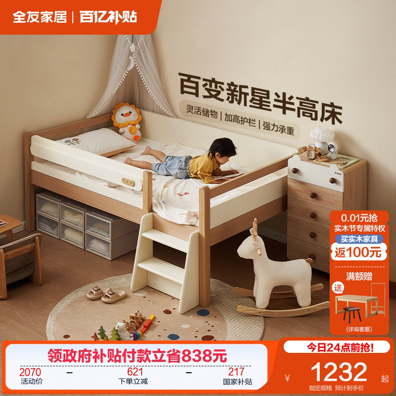 政府补贴全友家居儿童床半高床卧室小户型省空间男女孩带围栏单人