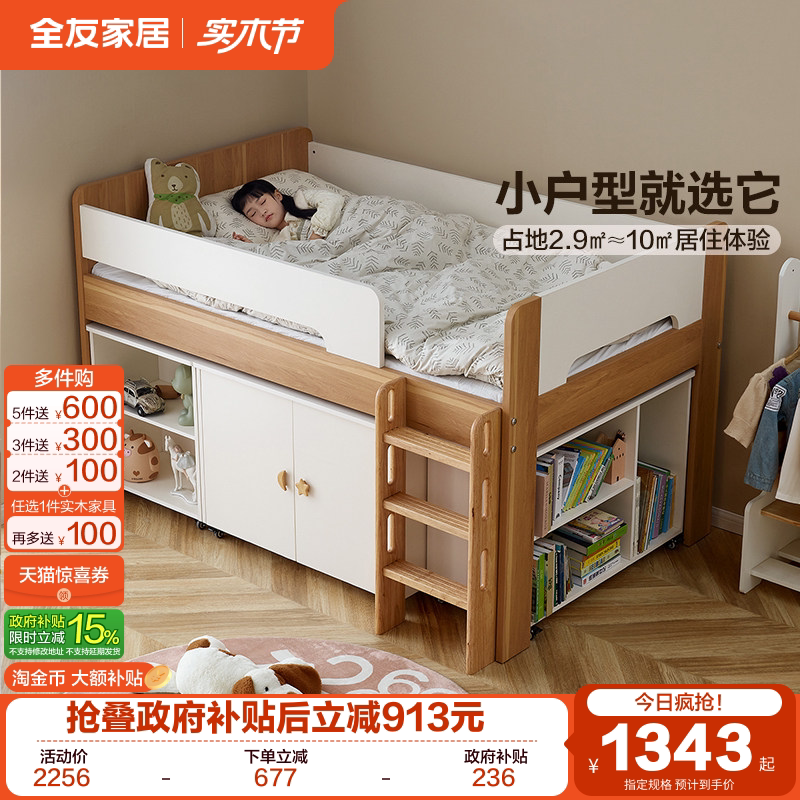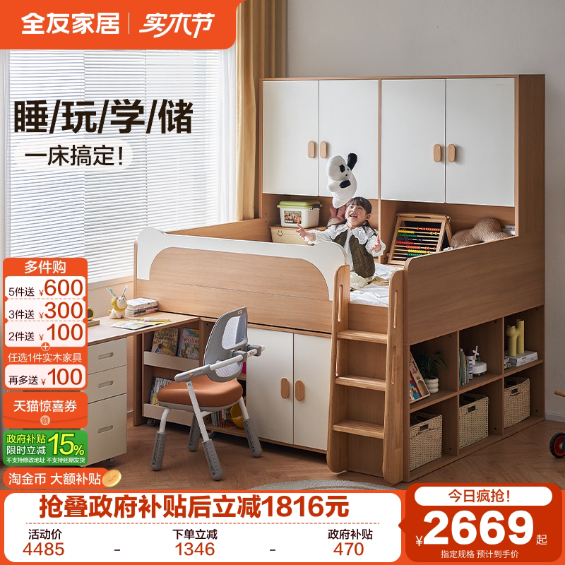 政府补贴全友家居2025新款原木风儿童半高床小户型卧室男孩单人床