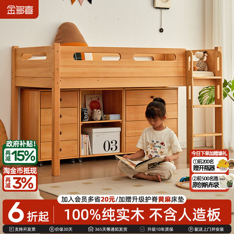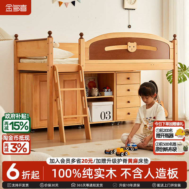 金多喜儿童半高床高架床储物床带书柜斗柜衣柜床进口榉木爬梯床架