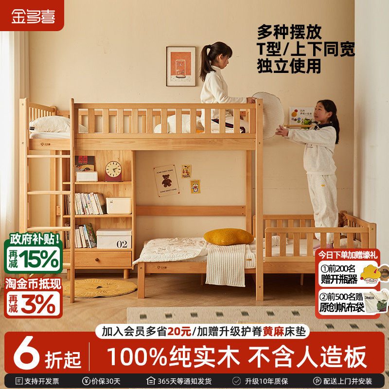 金多喜儿童上下床双层床错位型交错式高低床新型实木半高床上下铺