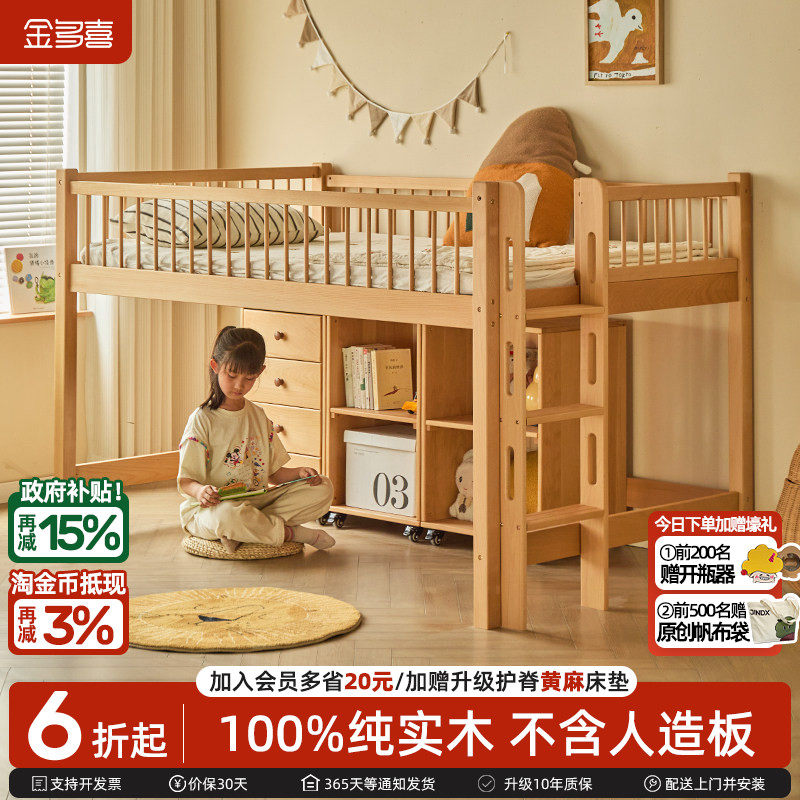 金多喜儿童半高床高架床储物床带书柜斗柜衣柜床蒙氏榉木爬梯床架