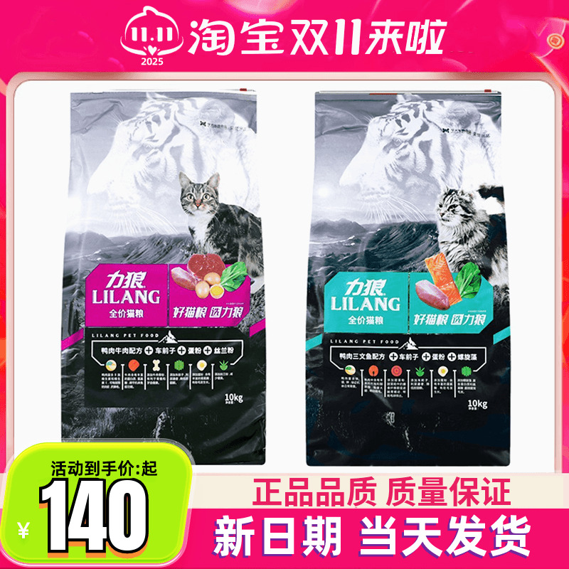 力狼猫粮10kg牛肉味20斤鱼肉味成猫粮幼猫粮通用全价营养主食粮