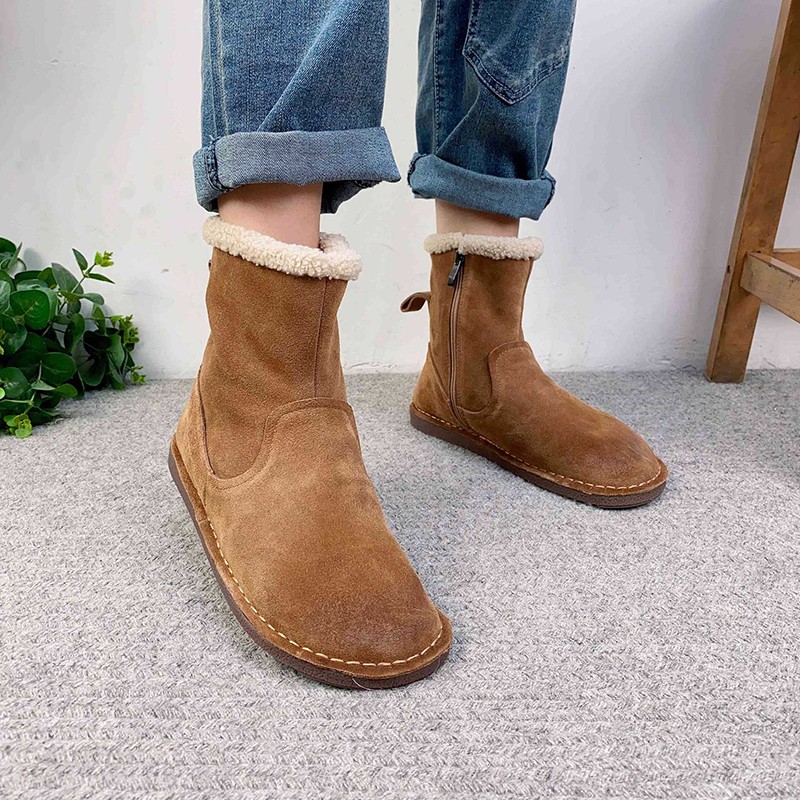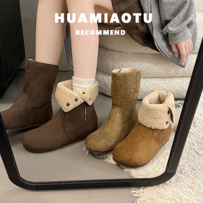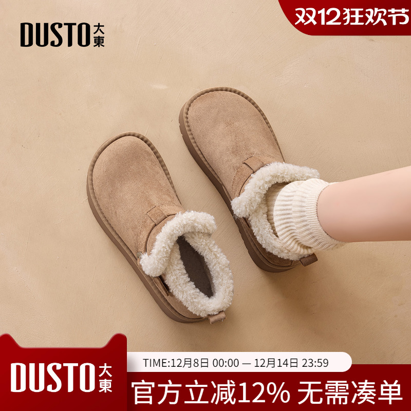 大东女靴雪地靴2025冬季新款复古绒面平底棉靴加绒加厚中筒靴短靴