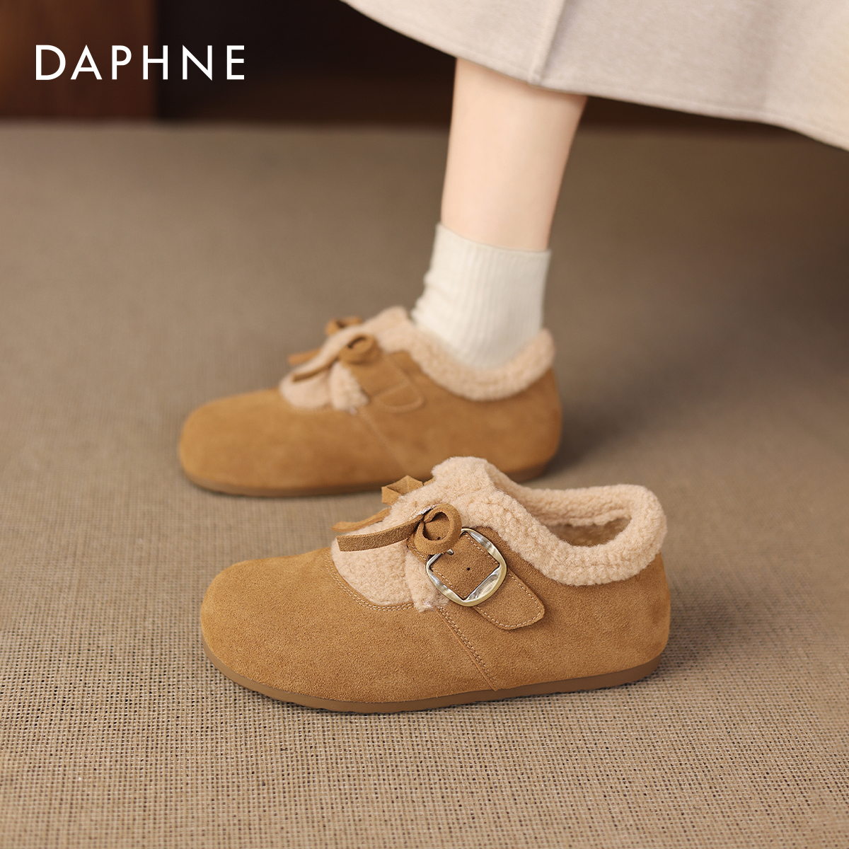 达芙妮雪地靴女款2025新款冬季加绒勃肯棉鞋保暖平底棉靴子毛毛鞋