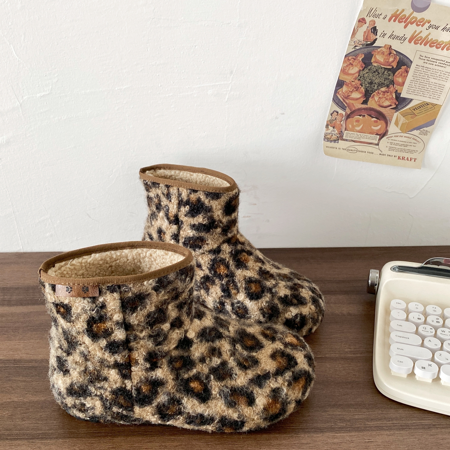 喜叔复古豹纹毛毛雪地靴女2025新款冬季保暖加绒勃肯短靴平底棉靴
