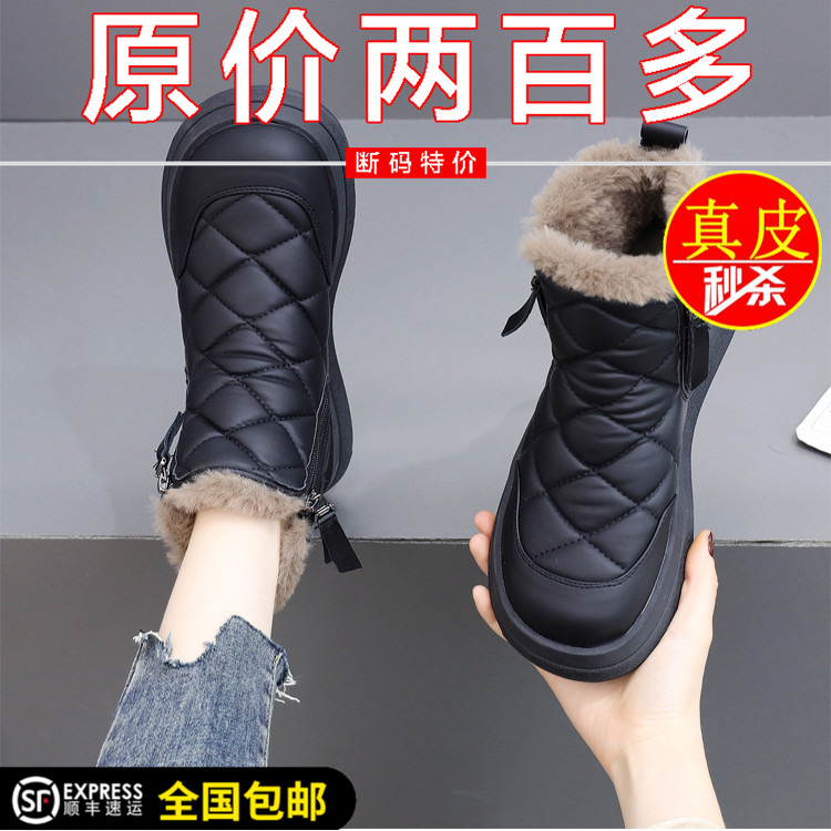 断码清仓真皮雪地靴女2025新款冬季加绒防滑加厚保暖短靴平底棉靴
