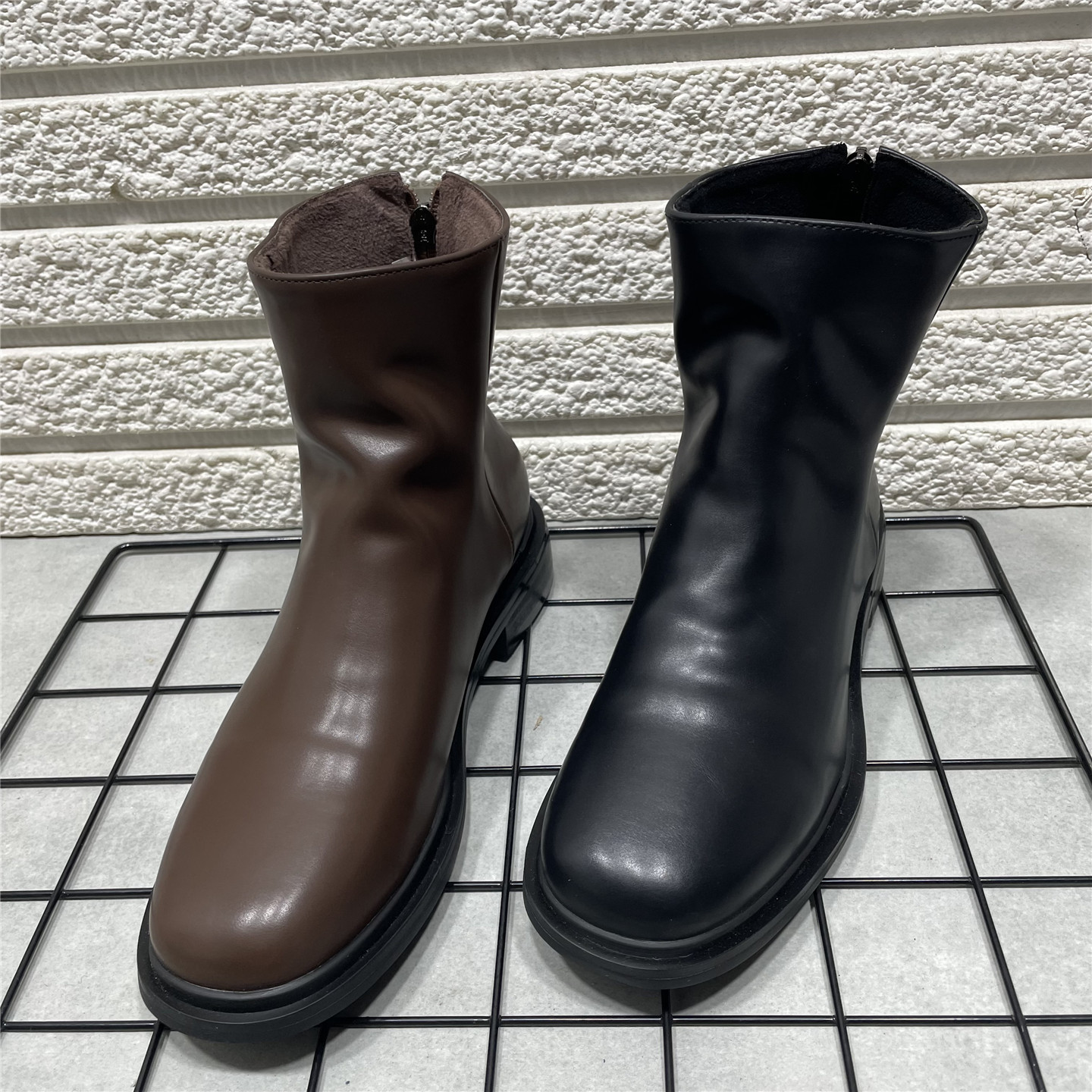 断码处理冬季加绒英伦风后拉链短靴女复古裸靴平底棉靴显瘦马丁靴