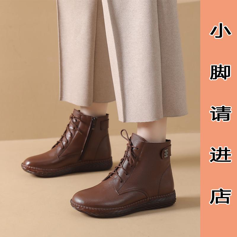时尚百搭妈妈鞋真皮短靴女313233小码马丁靴舒适平底棉靴大码43