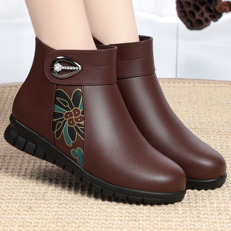 软底舒适老人平底棉靴2025年新款妈妈棉鞋女中老年保暖鞋真皮短靴