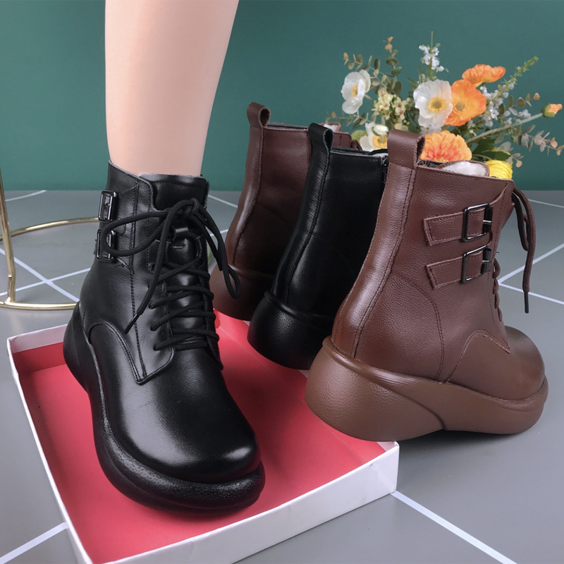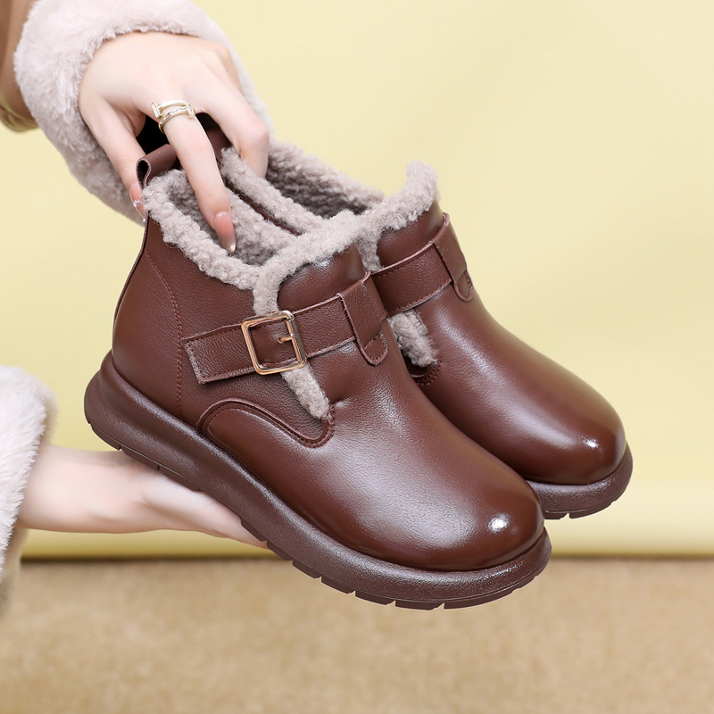 真皮厚底马丁靴女秋冬妈妈鞋2025新款休闲保暖雪地靴加绒平底棉靴