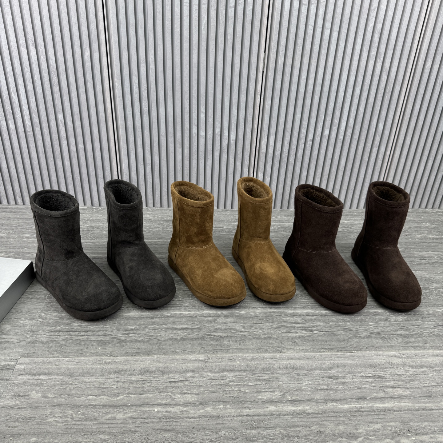 欧洲站欧货2025冬季新款短筒平底棉靴女磨砂皮加绒保暖套筒雪地靴