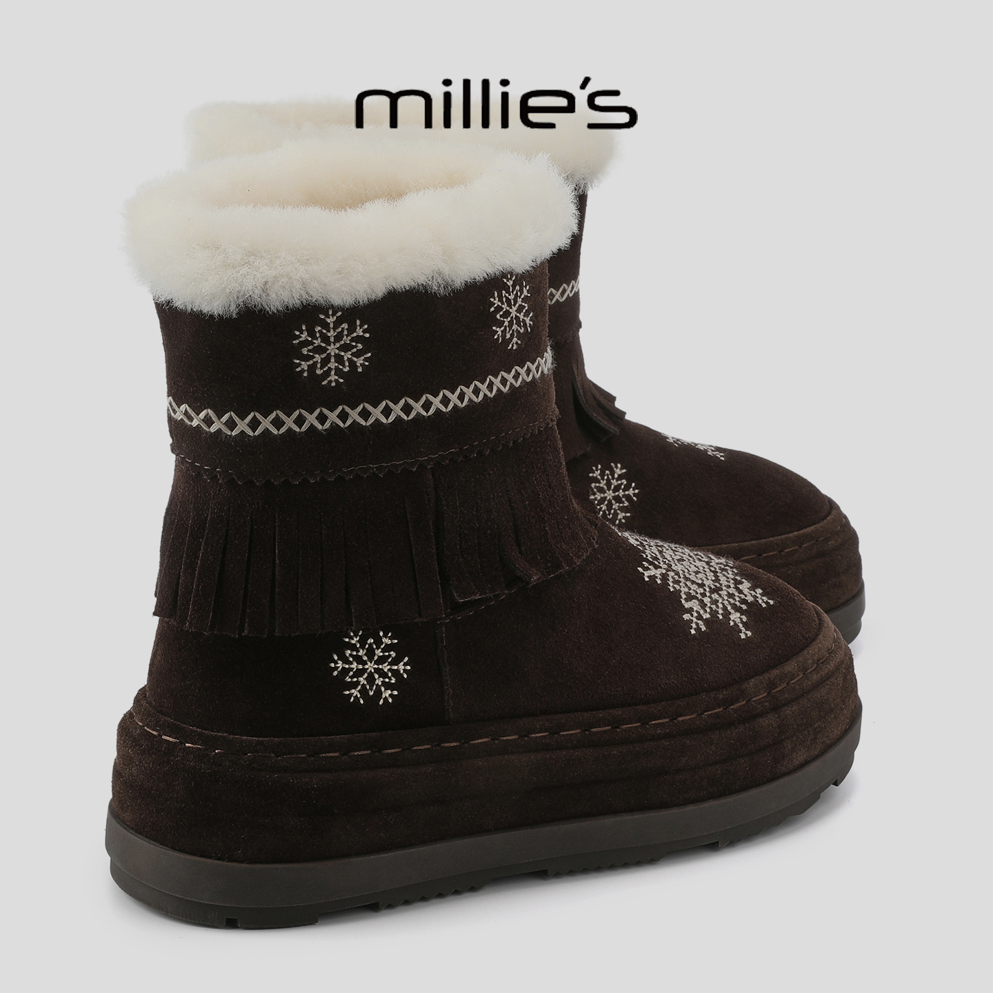 MILLIE'S/妙丽2025新款加绒保暖雪地靴女冬季保暖民族风平底棉靴
