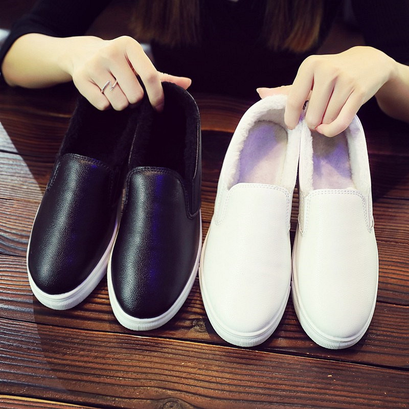 棉鞋女冬加绒平底棉靴防滑保暖休闲鞋一脚蹬懒人皮面防水乐福鞋女