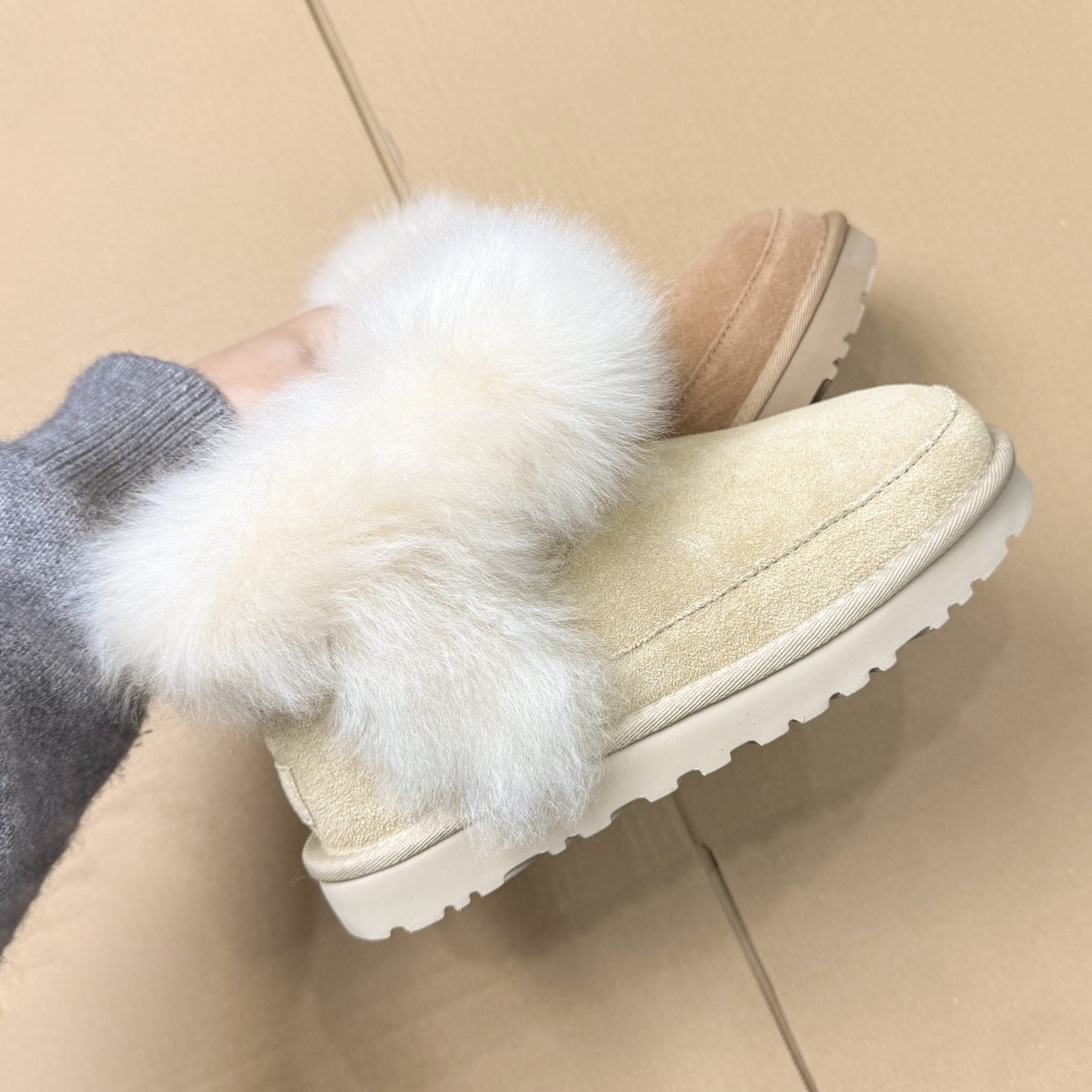 兔毛加厚真皮雪地靴女2025新款冬季防滑中筒靴加绒保暖平底棉靴子