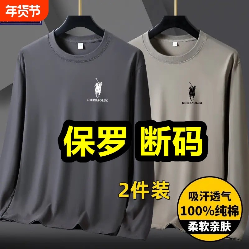 保罗100%纯棉中老年男士长袖t恤新款休闲大码体恤衫内搭秋衣春秋