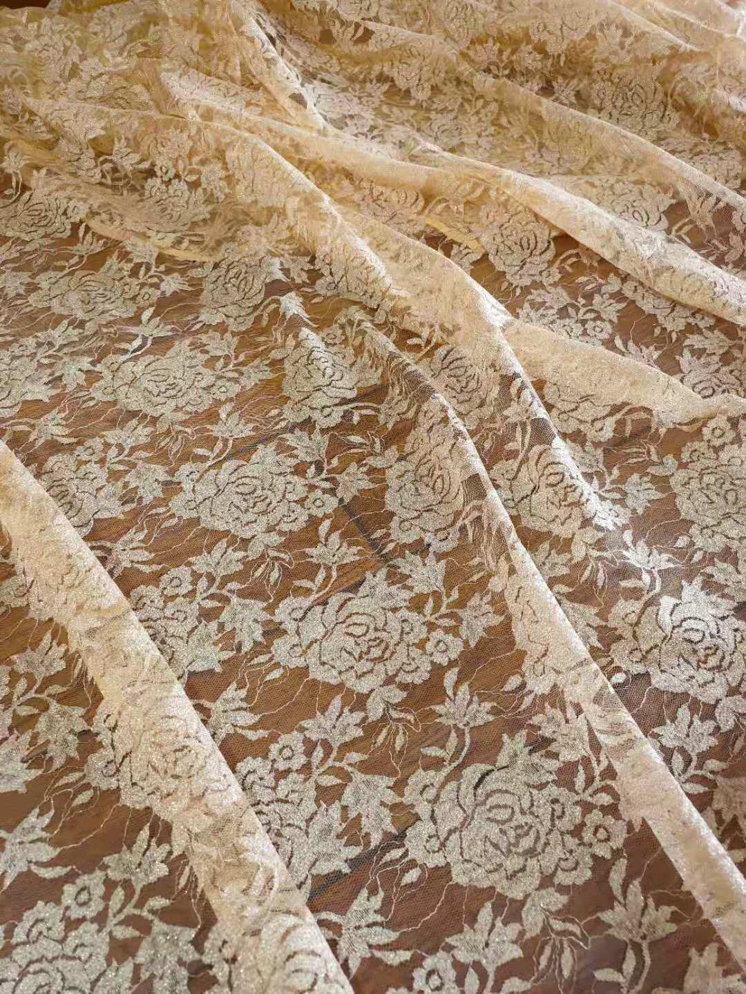鞠婧祎同款帷帽材料帽围金色金丝蕾丝面料高档布料连衣裙旗袍衣料