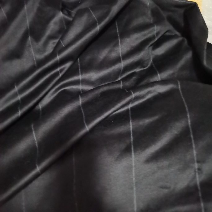 冬季羊绒纯黑色竖条纹黑顺毛面料 针织羊毛弹力高档布料一米价格