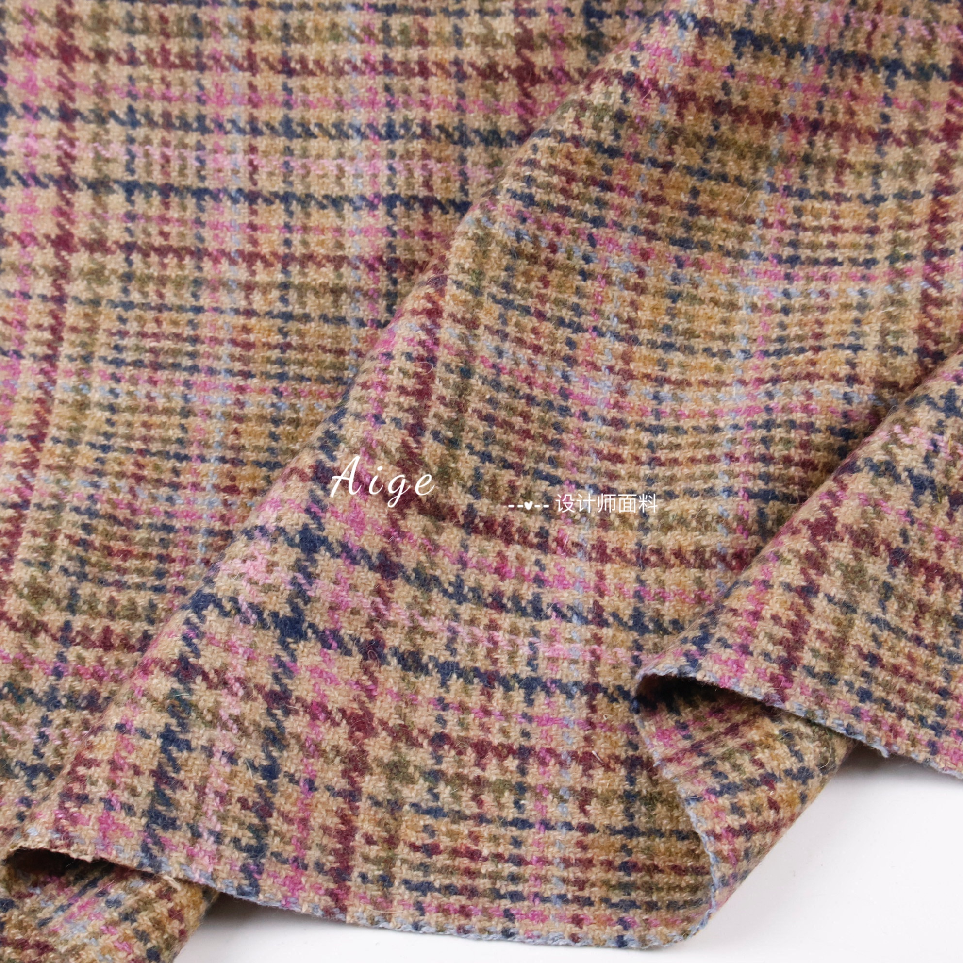 韩风复古 粉棕色格纹羊毛呢毛料面料冬天西装裤子半身裙高档布料