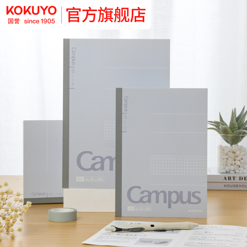 官方旗舰店 日本KOKUYO国誉Campus方格网格笔记本背胶学生用格子记事本线圈本易撕螺旋本5mmA5/B5/40页