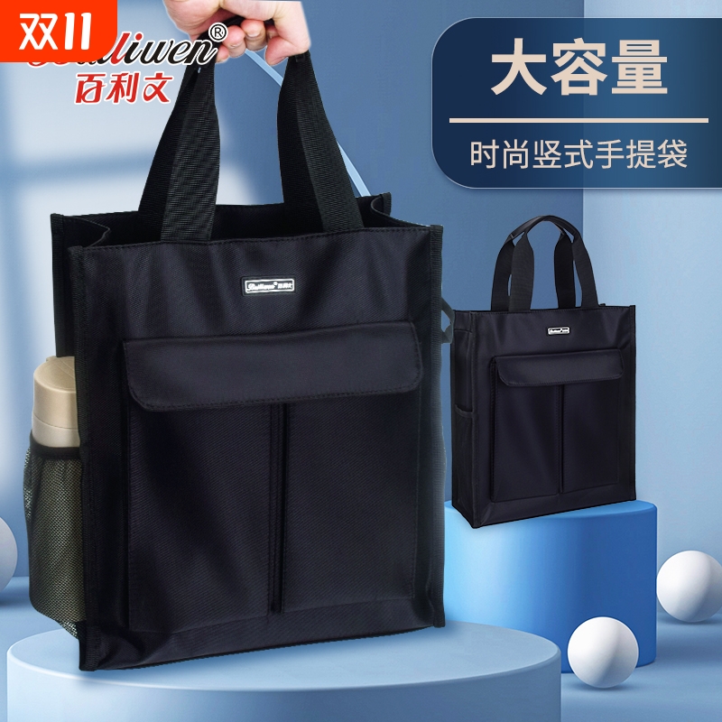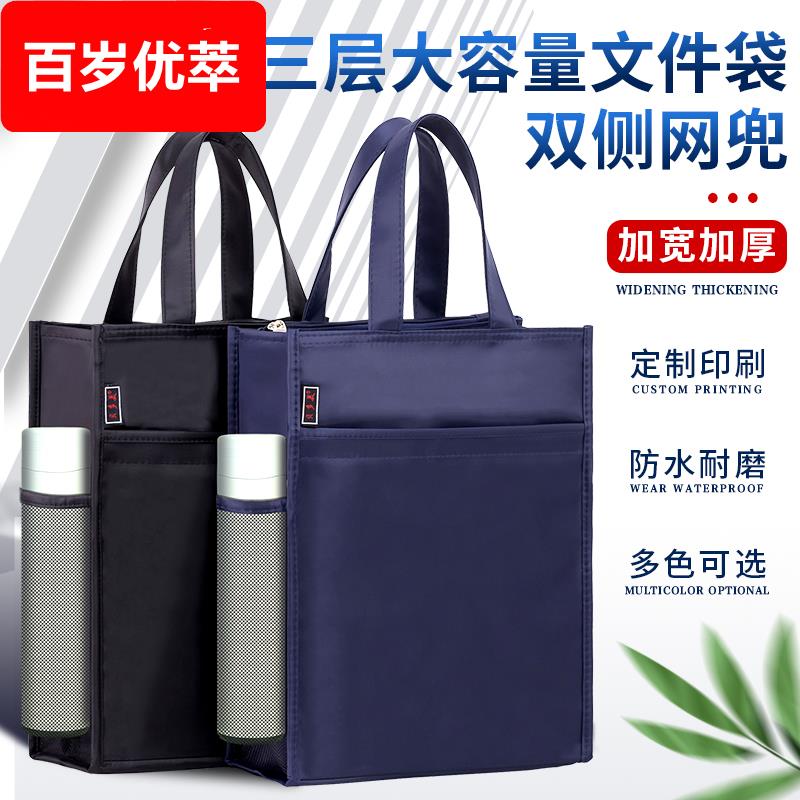 定制手提文件包补课习书袋大容量牛津帆布收纳会议办公文包男水杯