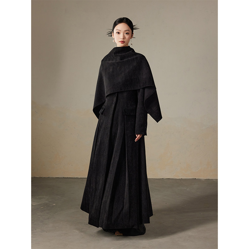 Lazy Didi海瑟薇 曲线雕刻4米裙摆收腰大衣长款显瘦千金气质毛呢