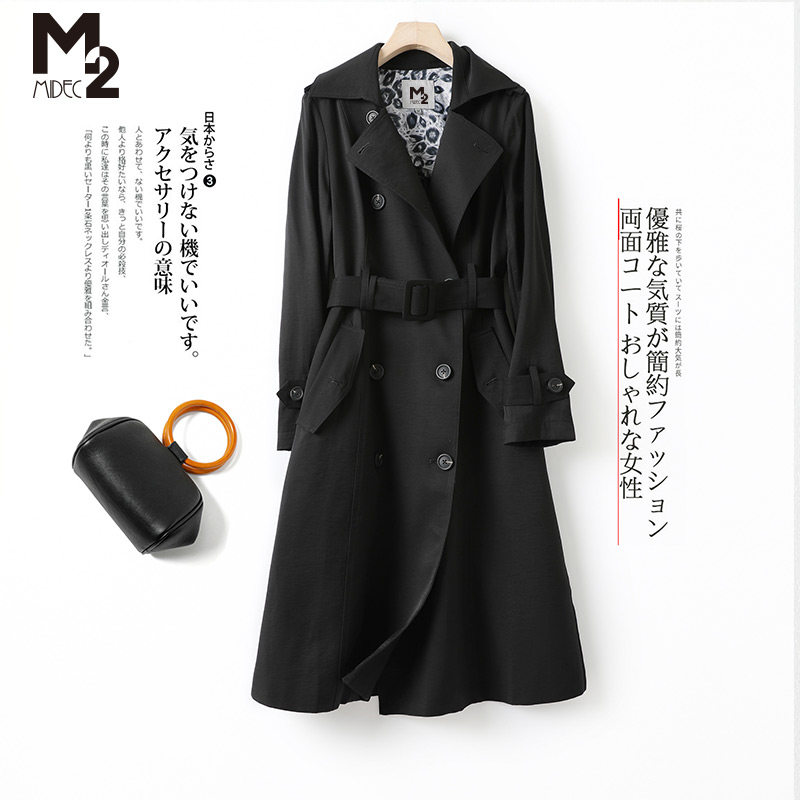 M2折扣店风衣中长款大气经典收腰长袖大码春秋收腰长款大衣外套
