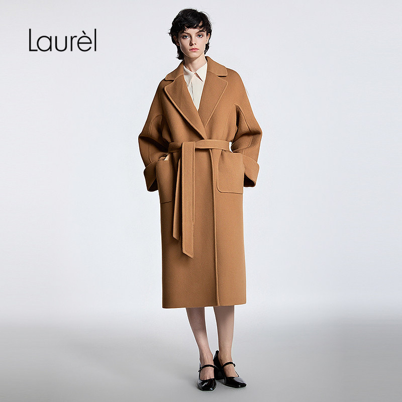 【绵羊毛】Laurel劳芮25秋新款驼色系带收腰长款大衣LWD363D04000