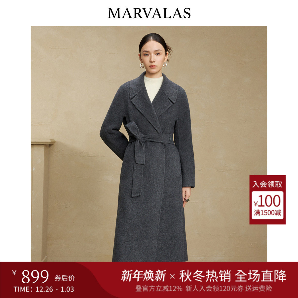 【纯羊毛】LANCY/朗姿2025冬新款老钱风双面呢腰带收腰长款大衣女